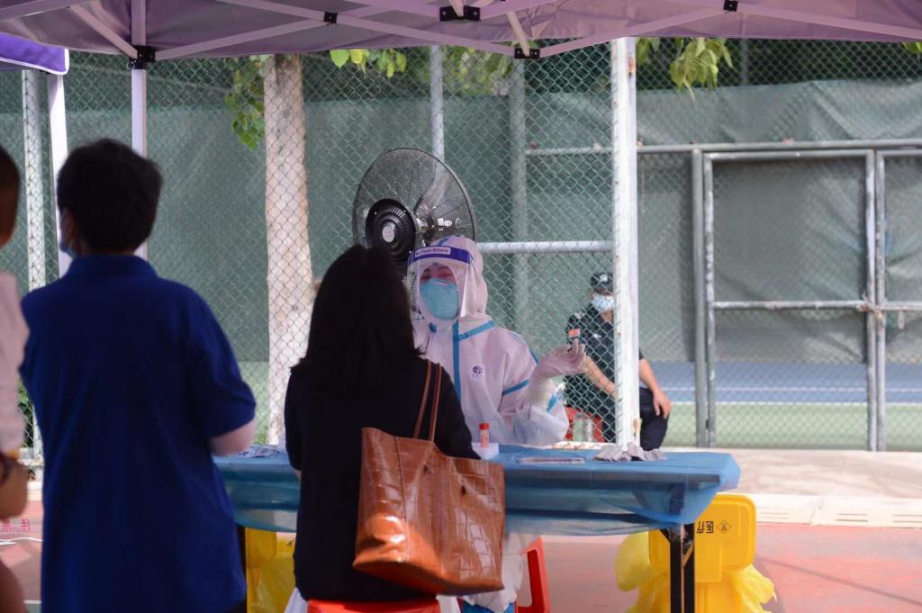 校疫情防控领导小组的工作人员介绍,为确保kaiyun采样工作顺利完成,昨晚接到任务后,后勤处和保卫处的同事半夜12点多赶来布置现场。考虑到今天是夏至,天气炎热,场内全部架起遮阳帐篷、安排了水冷风扇降温,还为采样的医护人员送上冰袋等消暑。