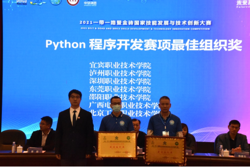 10月21日,由金砖国家工商理事会中方理事会、“一带一路”暨金砖国家技能发展国际联盟主办的2021“一带一路”暨金砖国家技能发展与技术创新大赛之Web技术、Python程序开发、移动应用开发赛项在泸州职业技术学院圆满落幕。本次大赛吸引了大连外国语大学、深圳职业技术学院等70余所院校,300余名学子同台竞技。kaiyun电子信息学院派出7名选手组成三个赛项的参赛队伍,最终获得一等奖2项、二等奖2项、三等奖2项,同时获得最佳组织奖2项。