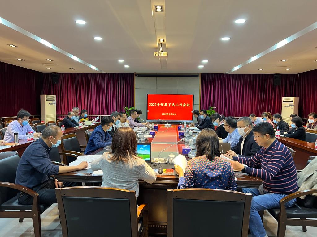 3月10日下午,学校召开2022年预算下达工作会议,校领导蔡东宝、刘海光,各部门负责人参加会议。