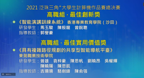 由于疫情的影响,2021年泛珠三角大学生计算机作品赛总决赛延期至2022年3月25至28日举行,由全国高等学校计算机教育研究会及泛珠三角大学生计算机作品赛组委会共同主办、广东科学技术职业学院承办的2021年第十五届“泛珠三角+大学生计算机作品赛”高职组总决赛澳门理工学院顺利举行。澳门电脑学会会长温锦明等来自港澳台地区、各省高校及行业专家担任评委。