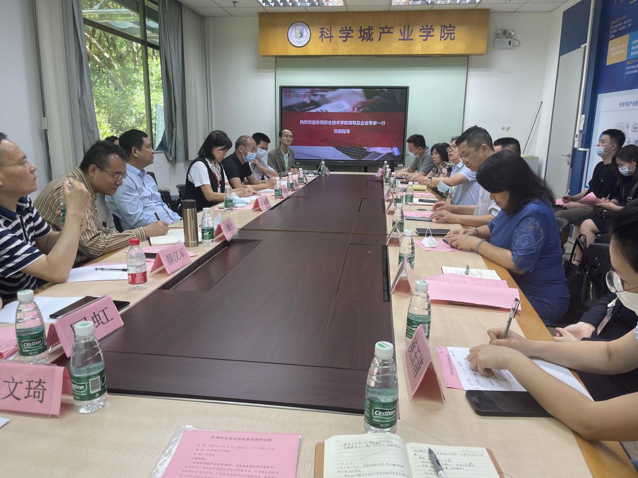 蒋新革校长介绍了科学城现代产业学院建设定位、发展规划及人才培养等基本情况。曾三军副校长介绍了打造现代产业学院管理机制,对产业学院的属性、投入模式、未来产业学院的发展规划等相关情况做了详细介绍。