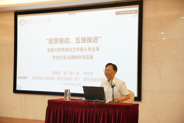 交流活动中,李伟东部长作了题为《党建与思想政治工作融入并主导学生社区治理的仲恺实践》的发言。李部长围绕当前学生社区管理的主要模式、立德树人根本任务与现代高校治理对学生社区的要求、学生社区治理体系的构建三个方面,对仲恺学生社区治理实践的成功经验做了详细的介绍。阐明了当前开展学生社区管理体制改革,对加快学校治理体系和治理能力现代化建设、提升思想政治教育工作能效的重要作用。