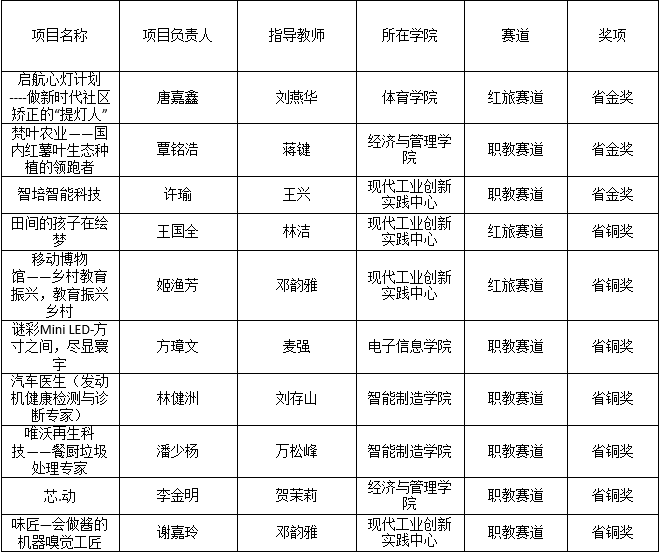 创业学院于2021年11月开始本届赛事的备赛工作,学校领导高度重视,各二级学院高度重视、组织有力,全校共计征集了赛事项目100个,邀请书面评审,遴选出60个优秀项目作为种子项目,通过校赛路演,评选金奖项目4个,银奖6个,铜奖10个,并最终推送34个项目参加省赛。