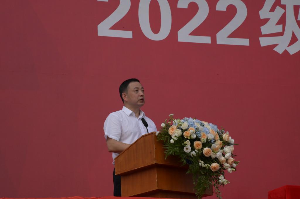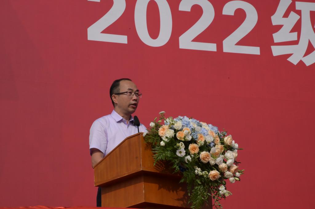 贺定修校长在讲话中代表学校全体师生员工,对成为新一代东职人的新同学,表示热烈的欢迎,他表示,当今中国,职业教育很有“奔头”,来到东莞,技能人才真的“吃香”,走进东职,大学生活非常“精彩”。他通过四问四答,以生动案例对新生提出期望:希望你们把人生选择与时代需要熔铸在一起,在东职这片充满活力的热土上不断历练成长,以奋斗之青春向党和祖国、向父母亲朋、向学校老师作出最精彩的回答。