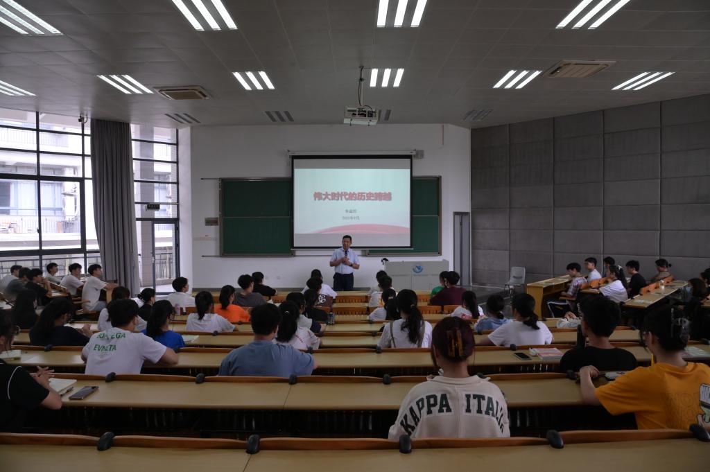 校党委书记朱益民为22级工业2班、22级文秘班的同学们讲述《伟大时代的历史跨越》的思政课。他表示,过去一百年,中国共产党向人民、向历史交出了一份优异的答卷。我国经济实力上新台阶、民主政治全面推进、文化自信明显增强、人民生活持续改善、美丽中国步伐坚实,新时代有新作为新成就。他指出,习近平总书记提出“五个必由之路”和“五个战略性有利条件”的重大论断,揭示了新时代中国的“成功密码”,展望了中国发展的光明前景。接下来我们要用好“有利条件”,走好“必由之路”,以实际行动迎接党的二十大胜利召开。他勉励同学们,要勿忘昨天的苦难辉煌,无愧今天的使命担当,不负明天的伟大梦想。