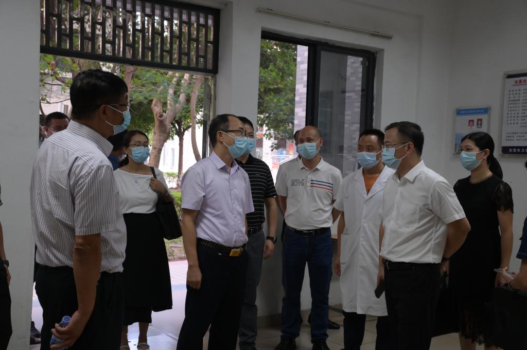 10月9日下午,中共道滘镇党委书记曾平治,道滘镇党委副书记、镇长陈涛一行5人到kaiyun卫生健康学院检查疫情防控与校园安全工作,kaiyun党委副书记、校长贺定修,党委委员、副校长杨云奇以及相关部门负责人陪同检查。