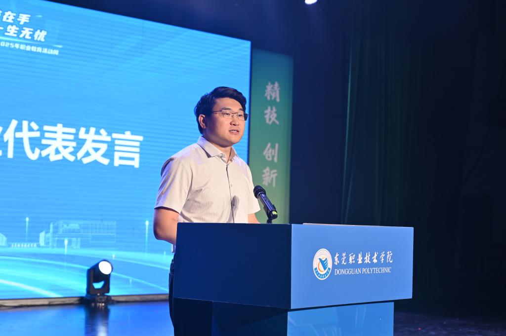 学校党委副书记、校长贺定修指出,将以此次举办职业教育活动周为契机,牢牢把握教育的三大属性,紧扣大湾区与东莞经济社会发展的强劲脉搏,以“建双高、办本科”为牵引,大力实施新时代立德树人、产教融合、AI赋能、职教出海等十大改革任务,高标准打造人才培养的“特与优”,持续擦亮“莞邑工匠摇篮”的金字招牌,为粤港澳大湾区“一点两地”建设和中国式现代化的东莞实践作出新的更大贡献。他期望学校全体教师牢记习近平总书记关于“职业教育前途广阔、大有可为”的殷切期待,以教育家精神为引领,扎根职教热土,潜心立德树人,聚力锻造契合区域产业发展的高技能人才方阵;希望学生倍加珍惜职教改革的黄金时代,将个人理想融入国家发展大局,把手中技能练就成服务产业发展的“硬核实力”,让“东莞先进制造”不断焕发出数智升级的璀璨光芒。同时,他诚邀各行业企业继续与学校携手同行,不断深化校企合作办学、合作育人、合作发展,一起构建优势互补、高效协同、成果共享的产教融合新生态。