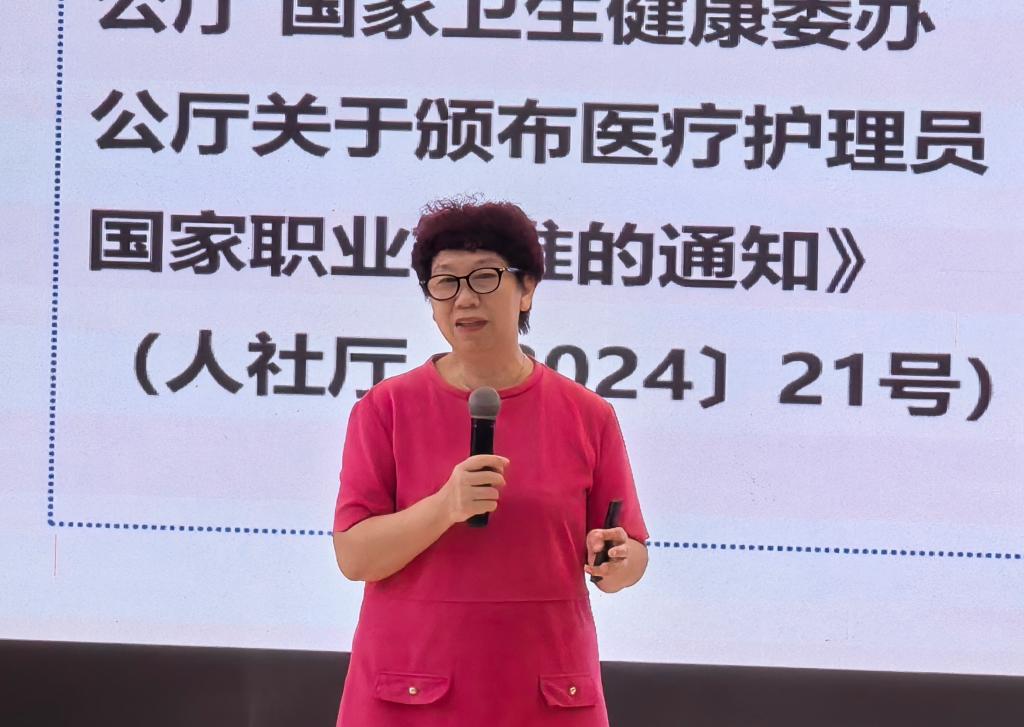 开班仪式结束后,东莞市护理学会副秘书长曾琨教授以“医疗护理员的现状及展望”为题开展讲座。她结合自身丰富的护理行业经验,向学员们介绍了医疗护理员的概况及行业现状,展望职业发展路径,讲解职业素养与沟通技巧。该讲座既为学员勾勒出清晰的职业发展蓝图,也通过传递前沿理念助力提升行业服务标准,为构建专业化、规范化的医疗护理人才梯队奠定认知基础。