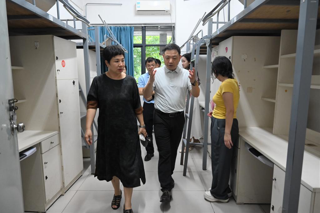 在实地察看了校园实训基地、附属幼儿园、大学生超市、医务室、学生宿舍及食堂等重点场所和重要设施设备的相关情况后,司琪书记对发现的问题进行了现场反馈,要求相关负责部门限期整改,彻底排除安全隐患。