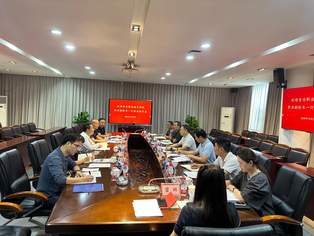 10月20日下午,吉安职业技术学院李洁副校长一行来kaiyun调研交流,kaiyun党委委员、副校长杨云奇及相关部门负责人参与接待。