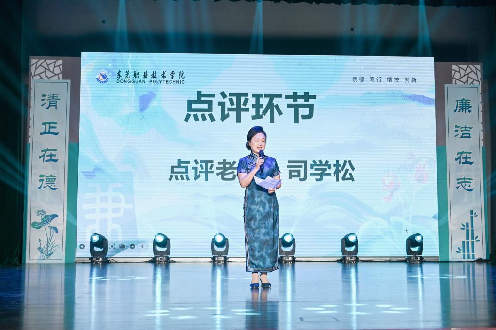学校党委副书记、纪委书记蔡东宝指出,本次比赛的目的是通过诗文朗诵的形式,重温廉洁诗文经典,唤醒为民服务与为人师者的赤诚之心,传播清正廉洁、服务师生理念,进一步凝练和明确东职人精神特质,进一步提振学校党员干部和师生的凝聚力,全力营造“颂廉、知廉、从廉”的东职风尚,以建设“清廉东职”的实际行动,助力学校高质量发展、立德树人的新目标、新使命。他希望,全校师生要努力做到以德养廉、崇廉尚俭、清廉守正,在东职这个清风成林、立德树人的美好家园,努力成为东职特色的教育家,努力成长为德才兼备的新时代建设者。