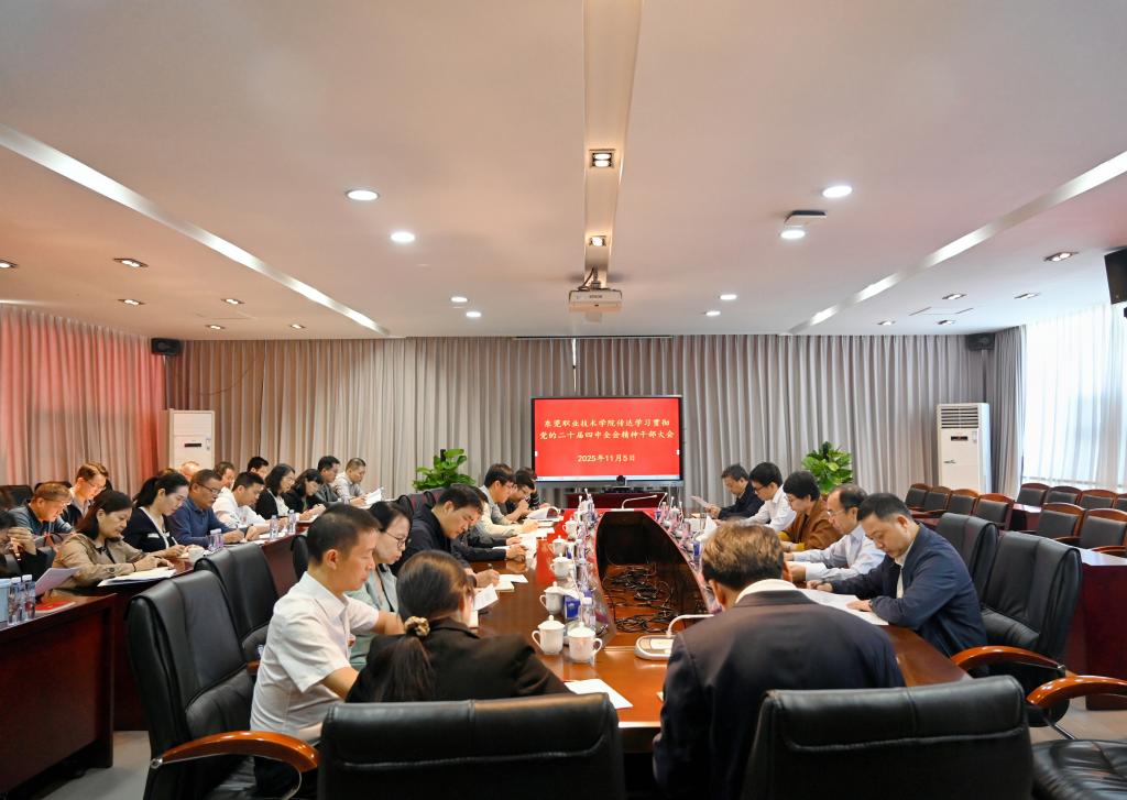 会议要求,学习宣传贯彻好党的二十届四中全会精神意义重大、责任重大。全校上下要更加紧密地团结在以习近平同志为核心的党中央周围,把学习成果转化为推动学校事业发展的强大动力,为把学校建成在全国更具影响力的一流职业院校而奋斗。