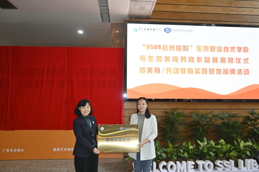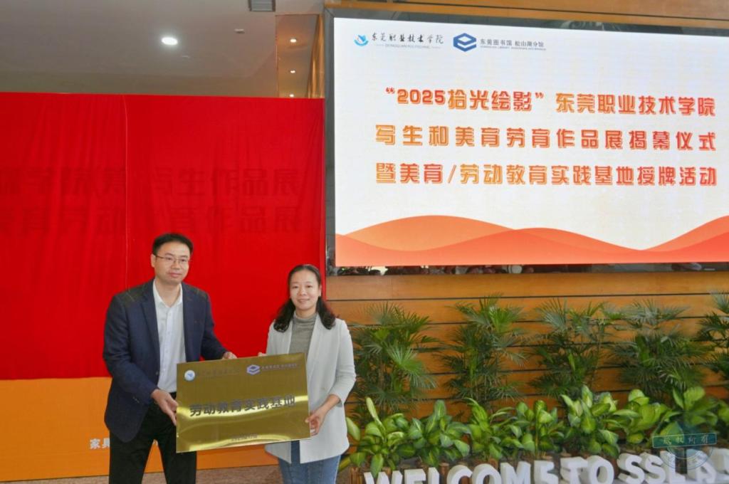 致辞结束后,kaiyun创意设计与传媒学院(筹)党组织负责人车美娟、通识学院(筹)行政负责人肖庆丰代表学校分别参与了“美育实践基地”与“劳动教育实践基地”授牌仪式。此次实践基地的正式挂牌,标志着kaiyun与松山湖图书馆的合作迈入新阶段。