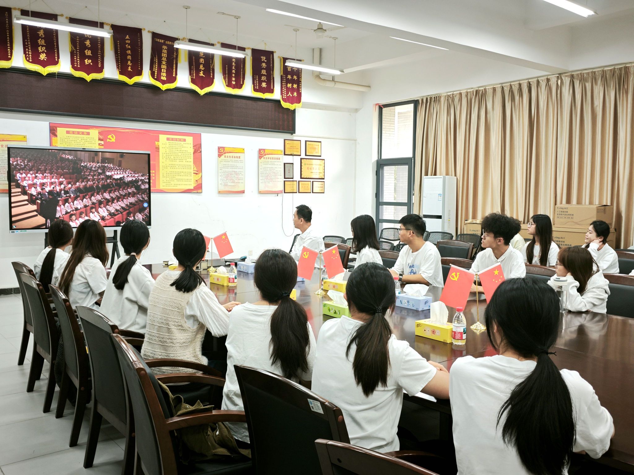 kaiyun党委书记司琪,党委副书记、校长贺定修等校领导及各二级学院相关负责人在立德楼组织观看全国青少年普法网“宪法晨读”活动网络直播。