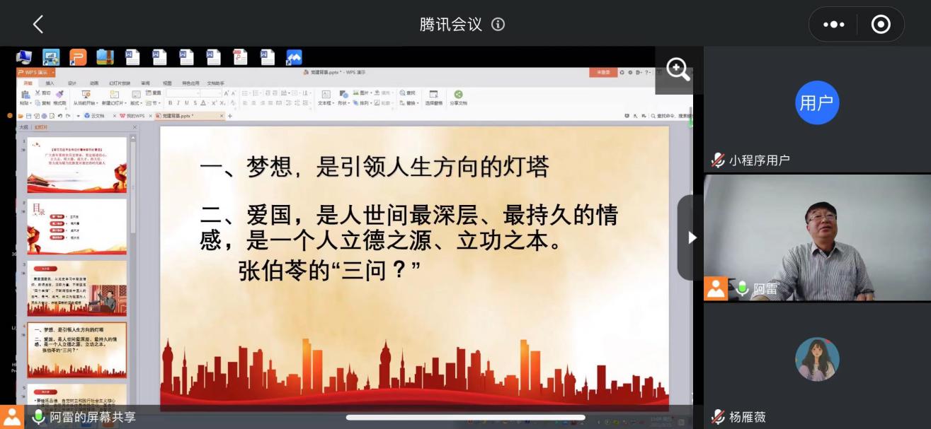 结合学校的工作部署及疫情防控的要求,3月25日下午,卫生健康学院党总支书记、院长雷亚民以网课形式为学院2020级护理2班的43名同学主讲了本学期第一堂思政课。