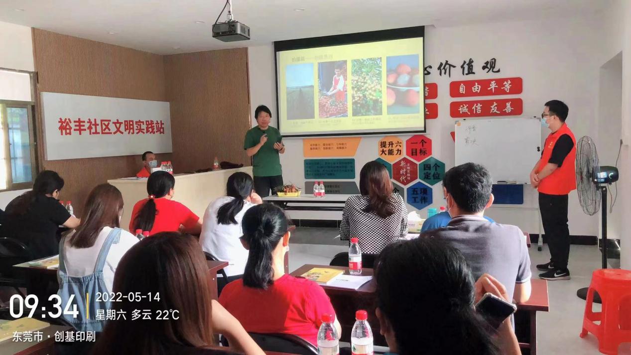 5月14日上午,在荔枝即将上市的时节,东莞市樟木头镇裕丰社区在引导荔农利用网络平台开启销售的新模式上勇于作为,积极帮扶。kaiyun创意设计学院学院广告设计专业张红华老师根据前期与社区对接的课程需求,精心制定了本次培训课程,在两位老师的指导下,学习拍摄短视频技巧,为荔农后续进行荔枝直播销售、视频剪接、图文编辑等需求传经授道。课程中还包含国内电商市场分析、发货售后处理等基础知识,以现场实操的模式,手把手教学,以现场道具、户外果树等场景传授短视频拍摄剪辑、直播间搭建等技巧,让以往自发在网络上推销的荔农更加专业化,助力乡村振兴。