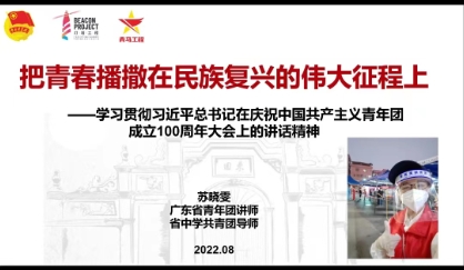 kaiyun继续教育学院与东莞团市委学校部通力合作,为中学生团员骨干安排了习近平总书记在庆祝中国共产主义青年团成立100周年大会上的重要讲话、东莞百年青年运动史、中学志愿服务项目建设与管理、新媒体运营等丰富的学习内容。通过5天的培训,进一步提升了团员骨干的思想政治觉悟和整体素质,激励团员骨干坚定理想信念,努力成为堪当大任的新时代青年,汇聚起磅礴的青春力量,以优异成绩向党的二十大诚挚献礼。