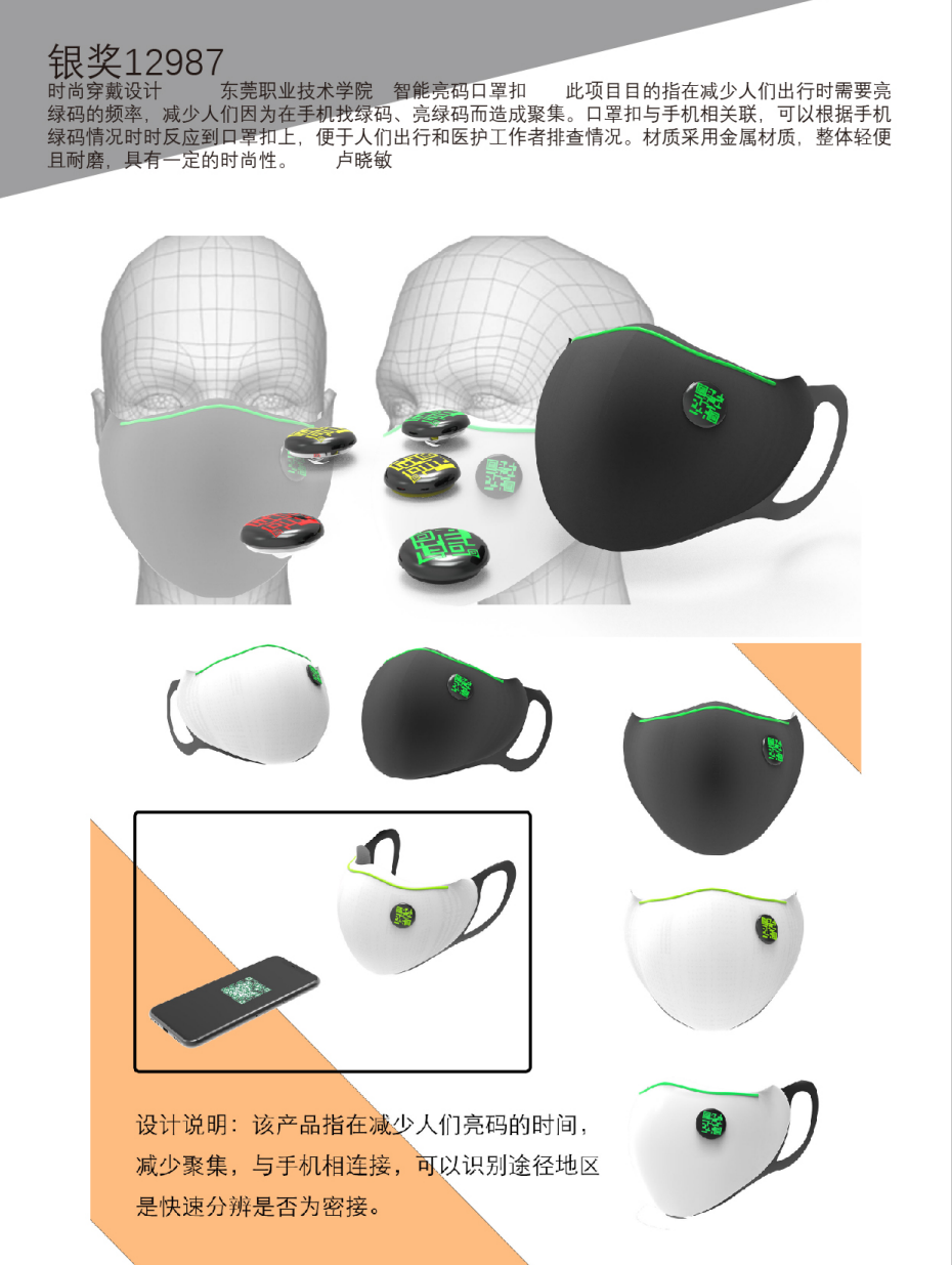 2020级工业设计专业学生卢晓敏的作品——“智能亮码口罩”(指导教师:吕珊)
