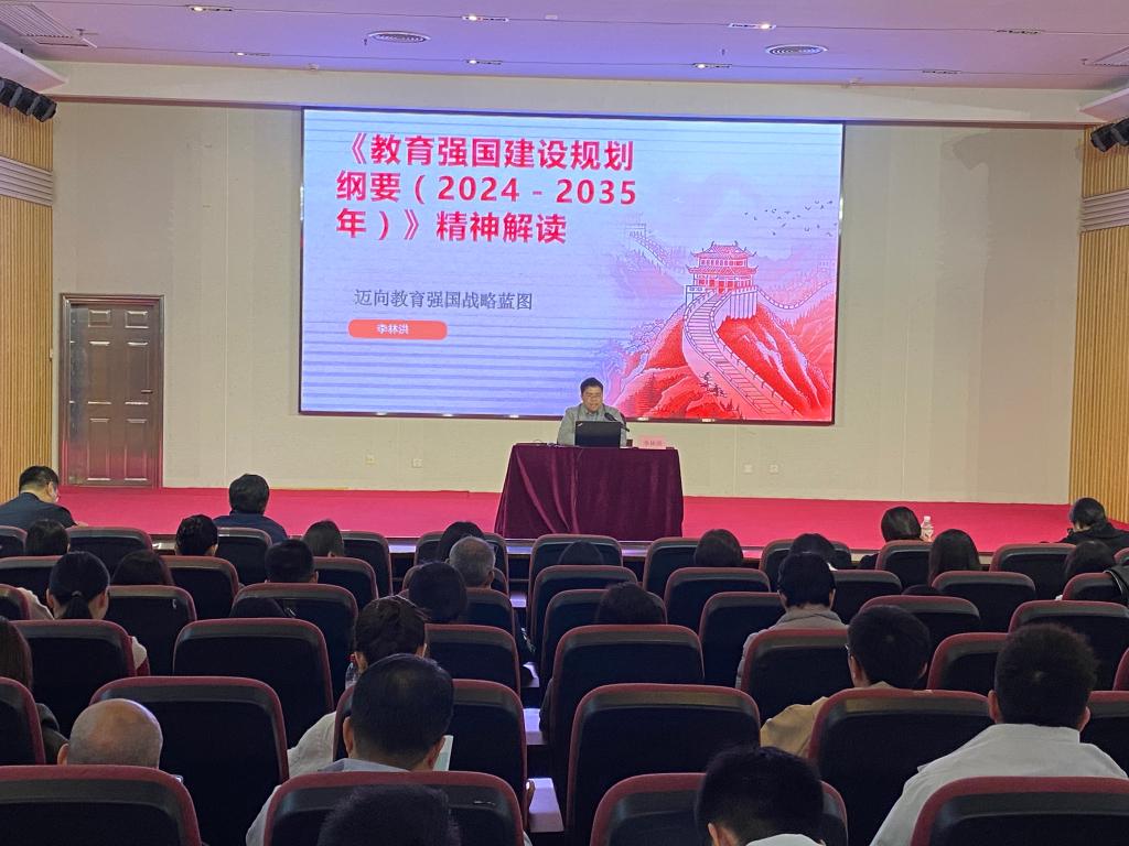 教辅党总支书记李林洪以“《教育强国建设规划纲要(2024-2035年)》精神解读”为题开讲党课,结合2025年全国教育工作会议和全省教育大会精神,全面梳理《纲要》的出台背景及其重大意义,深入解读《纲要》中规定的我国教育改革发展各项目标与任务、重点领域和改革措施,引导广大党员将工作和个人摆进去,在《纲要》擘画的未来职业教育版图中寻找定位,自觉认领任务。