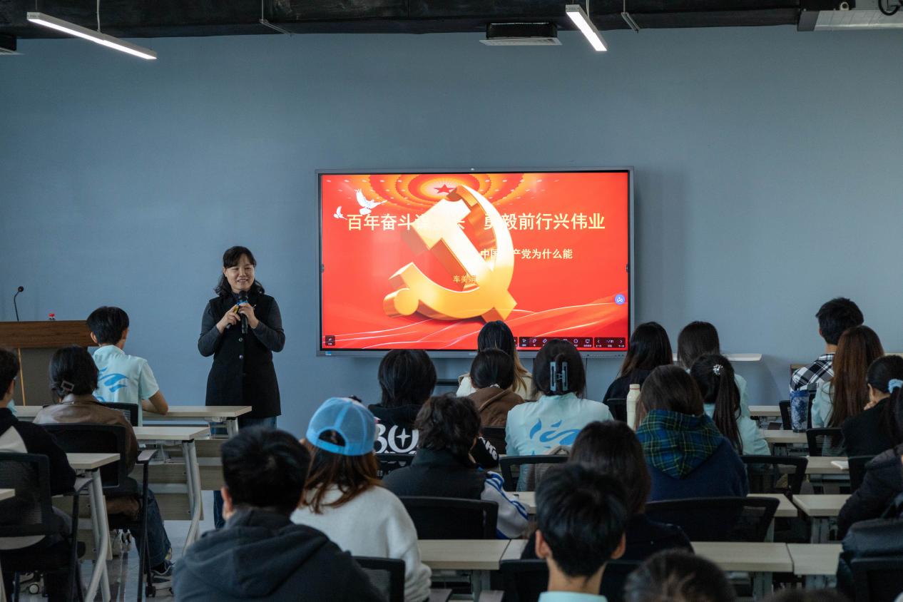 车美娟简要回顾了党的百年辉煌历程,强调青年学子要铭记历史使命,将个人理想追求融入国家发展大局。她结合学院专业特色,鼓励同学们将创意与智慧转化为实际行动,为实现中华民族伟大复兴的中国梦贡献青春力量。