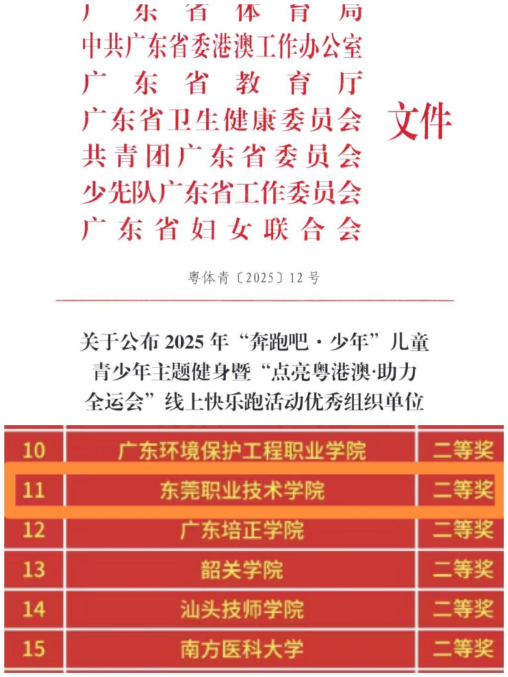 近日,广东省体育局、教育厅等联合主办的2025年“奔跑吧·少年”儿童青少年主题健身暨“点亮粤港澳·助力全运会”线上快乐跑活动落幕。kaiyun凭借优异表现,以总成绩位列全省高等院校组第十一名,斩获二等奖及“优秀组织单位”称号。全校共10207名学生参与,其中510人荣获奖项,包括一等奖103人、二等奖30人、三等奖121人、优秀奖146人、参与奖110人,充分展现了学子积极进取的精神风貌。