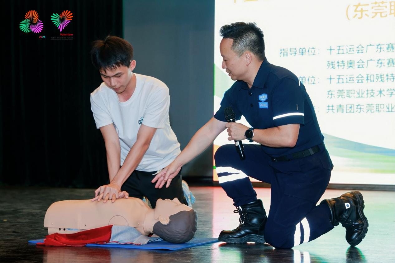 省级通用培训讲师为预录用赛会志愿者教授心肺复苏急救方法