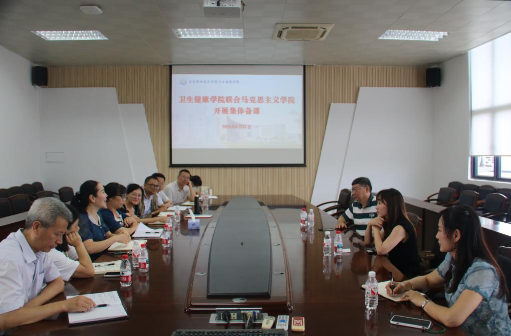 6月27日,卫生健康学院联合马克思主义学院开展课程思政结对集体备课。马克思主义学院院长石文斌、副院长罗美琪,课程思政教学研究中心副主任苗琳,卫生健康学院党总支书记兼院长宋海燕、副院长毛秀华,以及卫健院各专业负责人、教研办正副主任等参加研讨。