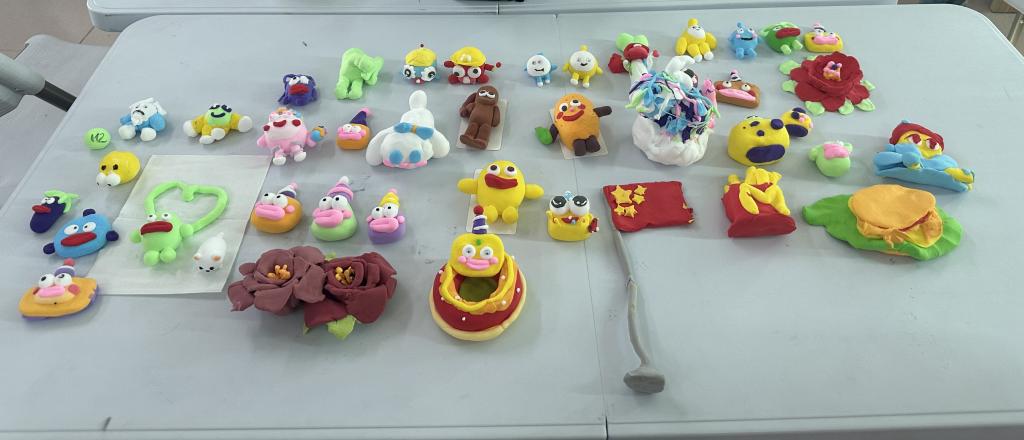 “传承节气文化”课程中,孩子们用色彩斑斓的作品诠释小暑节气的习俗与内涵;“趣味非遗扎染课”上,蓝靛染工艺与现代审美碰撞,诞生20余幅独具匠心的作品;“手工DIY系列”里,超轻黏土捏出奇思妙想,扭扭棒转出无限创意。