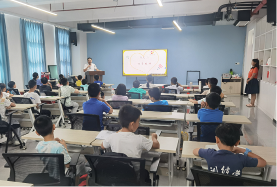 开营当天,40名7至12岁的青少年走进校园,开启学科与艺术融合的成长之旅。围绕“百千万·莞一夏”充实青少年假期的核心目标,夏令营课程兼顾科学性与趣味性:晨读培养阅读习惯,语文多维度提升素养,数学以趣味形式激发探索欲,趣味英语通过活动提升综合能力;自然科普借实验探索自然,暑期作业辅导助力规划学习。“百千万·莞一夏”特色课程彰显民生温度,“荔香入画”岭南押花非遗技艺手作体验课,让青少年感受传统文化魅力;蚊媒传染病防控和反诈课,以案例、演练增强健康与反诈意识;红色光影课堂传承红色基因;急救课传授实用技能;心意礼品 DIY 课堂传递情感;成语故事小剧场、单词接龙大冒险、记忆迷宫大闯关让知识学习更生动高效。