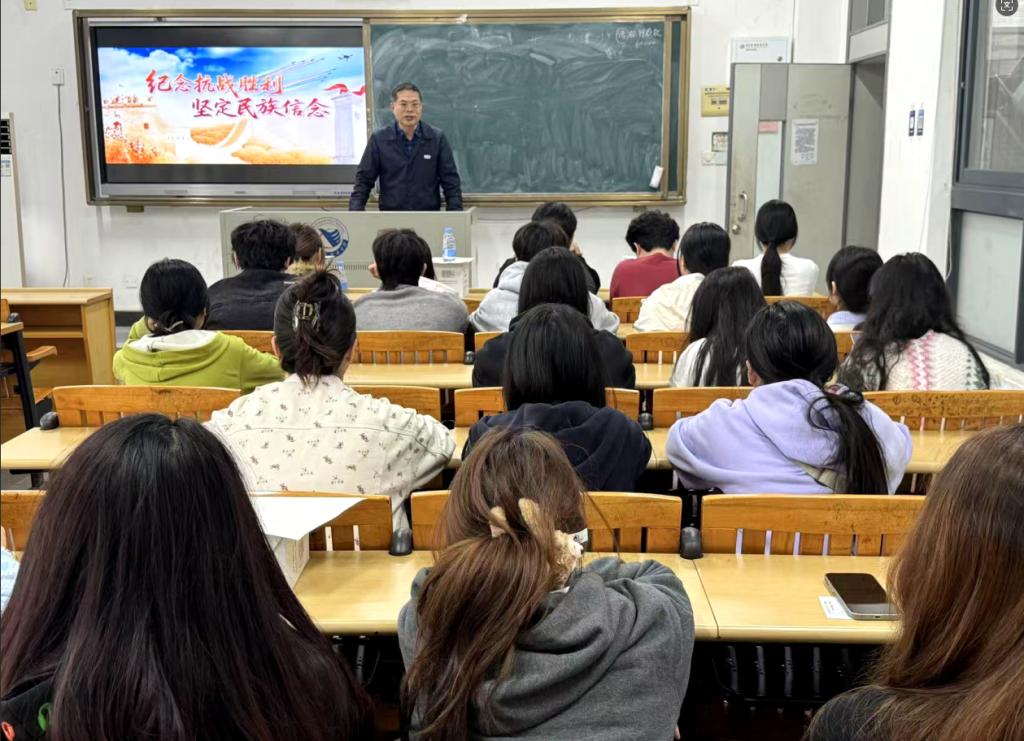 课程从“铭记历史 正义必胜”“民族壮举 浓墨重彩”“精神丰碑 永不磨灭”“珍爱和平 共创未来”四个维度展开,带领同学们深入领悟抗战精神的丰富内涵与时代价值。在授课过程中,苏江生动讲述了前辈先烈们的奉献事迹,同学们深受触动,爱国热情和民族自豪感被充分激发。苏江勉励同学们要以史为鉴,将个人理想与国家命运紧密结合起来,在学习和奋斗中践行责任、实现价值。