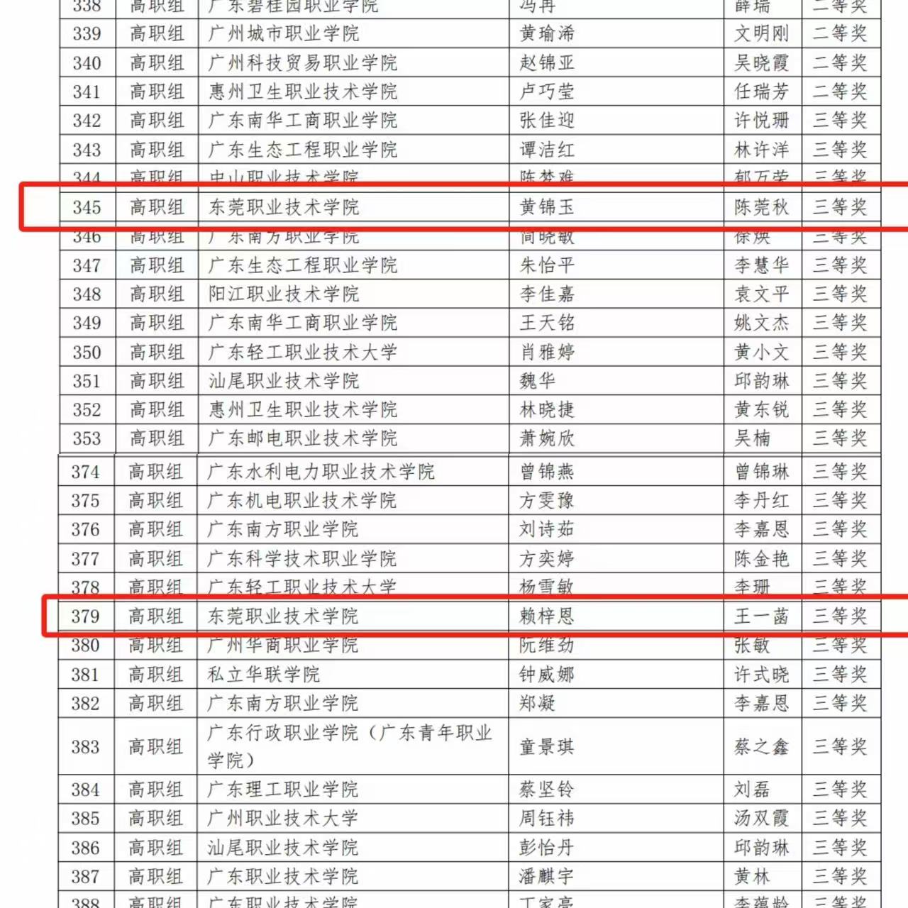 获奖名单