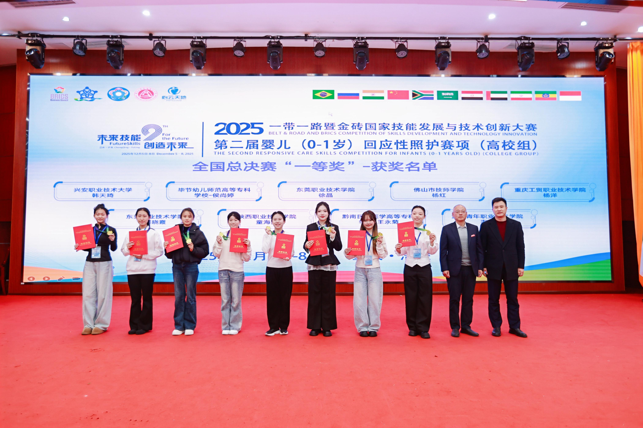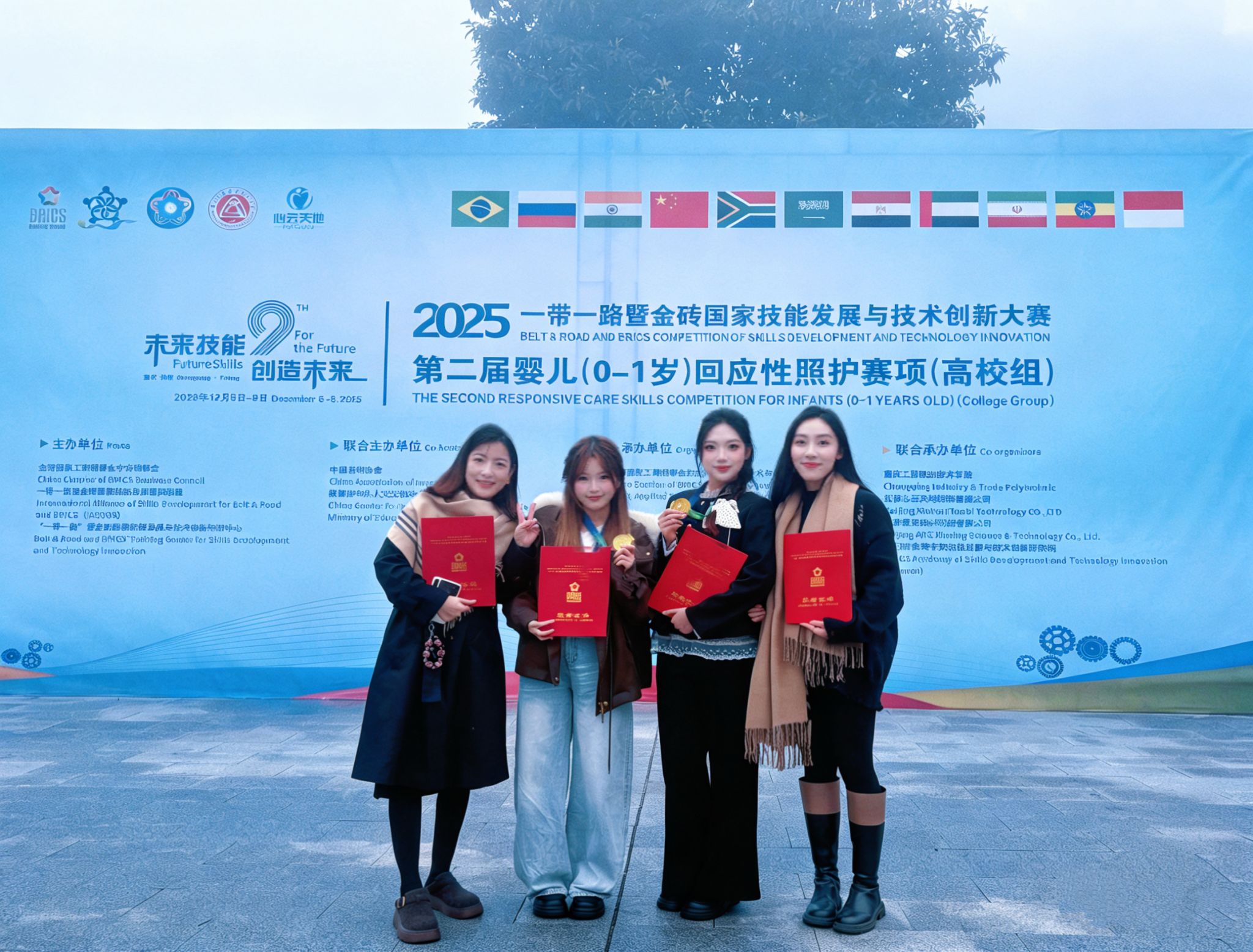 近日,2025“一带一路”暨金砖国家技能发展与技术创新大赛之第二届婴儿(0-1岁)回应性照护赛项(高校组)全国总决赛在重庆涪陵圆满落幕。经过为期四天(12月5日至8日)的激烈角逐,kaiyun选派的徐晶、郭晓霞同学,凭借扎实的理论功底、精湛的实操技能和卓越的综合素养,荣获本赛项最高荣誉——全国总决赛一等奖,充分展现了kaiyun学前教育专业优秀的教学质量。