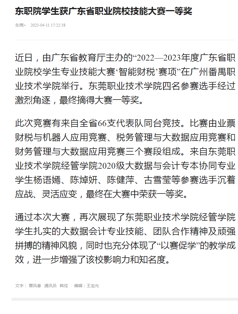 【东莞+】东职院学生获广东省职业院校技能大赛一等奖