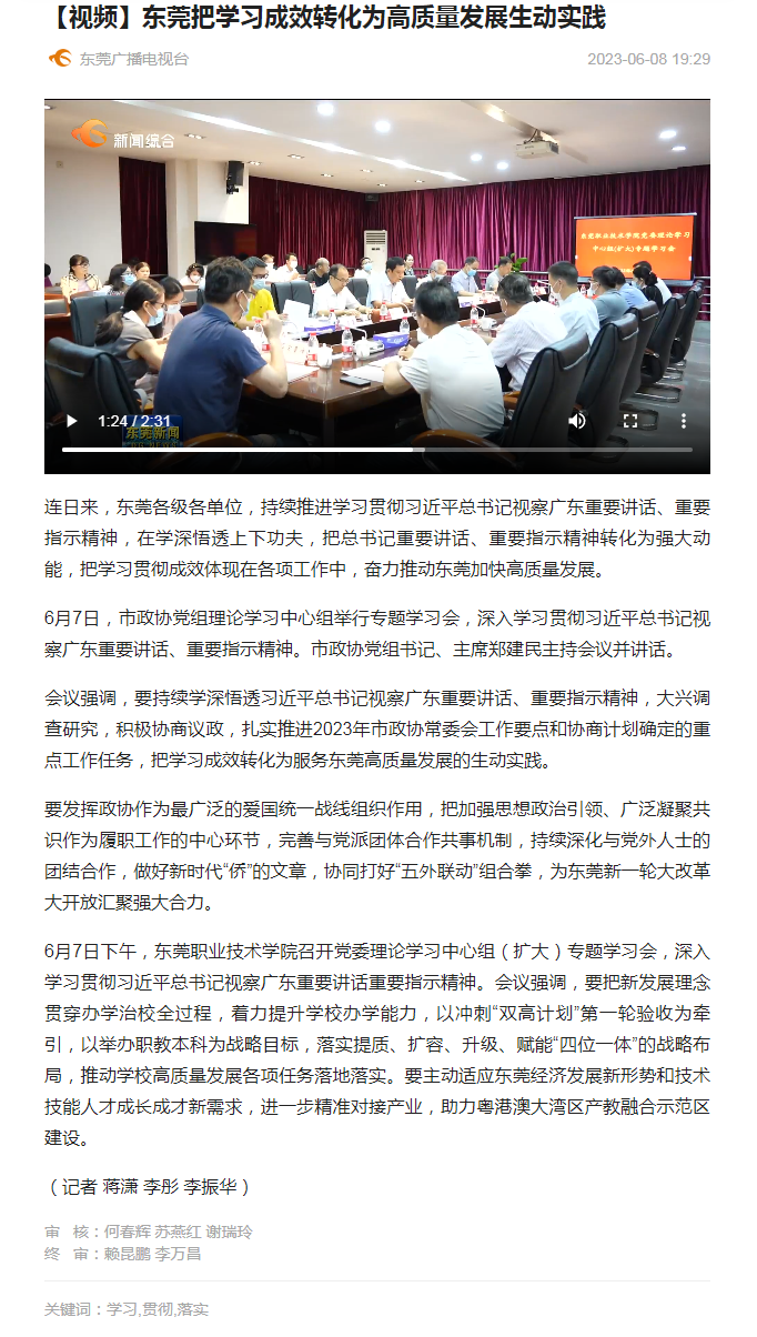 【东莞广播电视台】东莞把学习成效转化为高质量发展生动实践