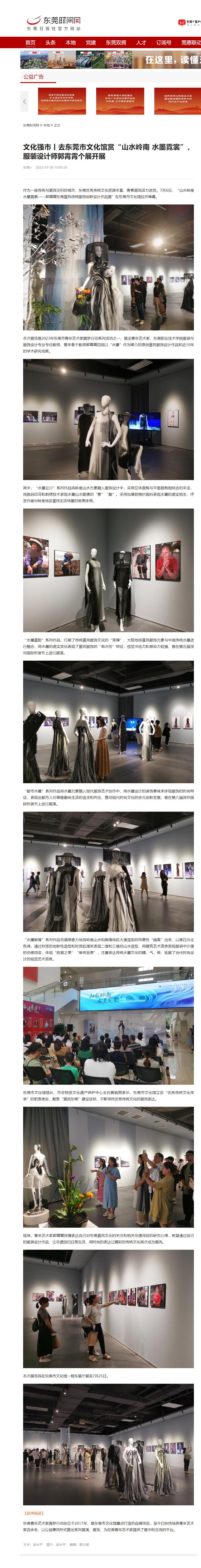 【东莞日报】文化强市丨去东莞市文化馆赏“山水岭南 水墨霓裳”,服装设计师郭霄霄个展开展