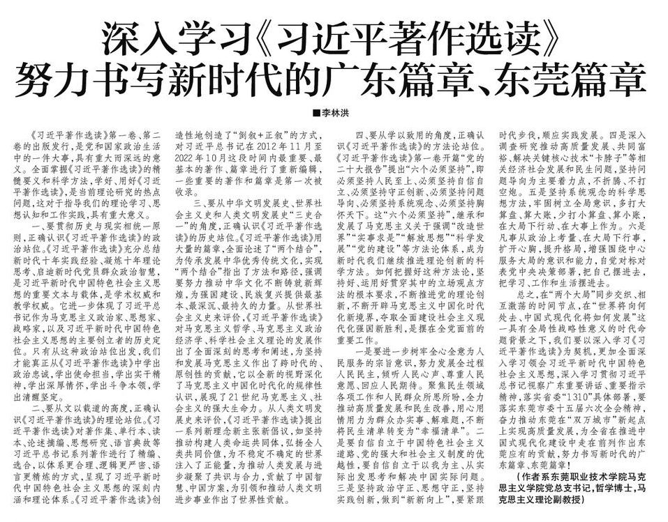 【东莞日报】深入学习《习近平著作选读》努力书写新时代的广东篇章、东莞篇章