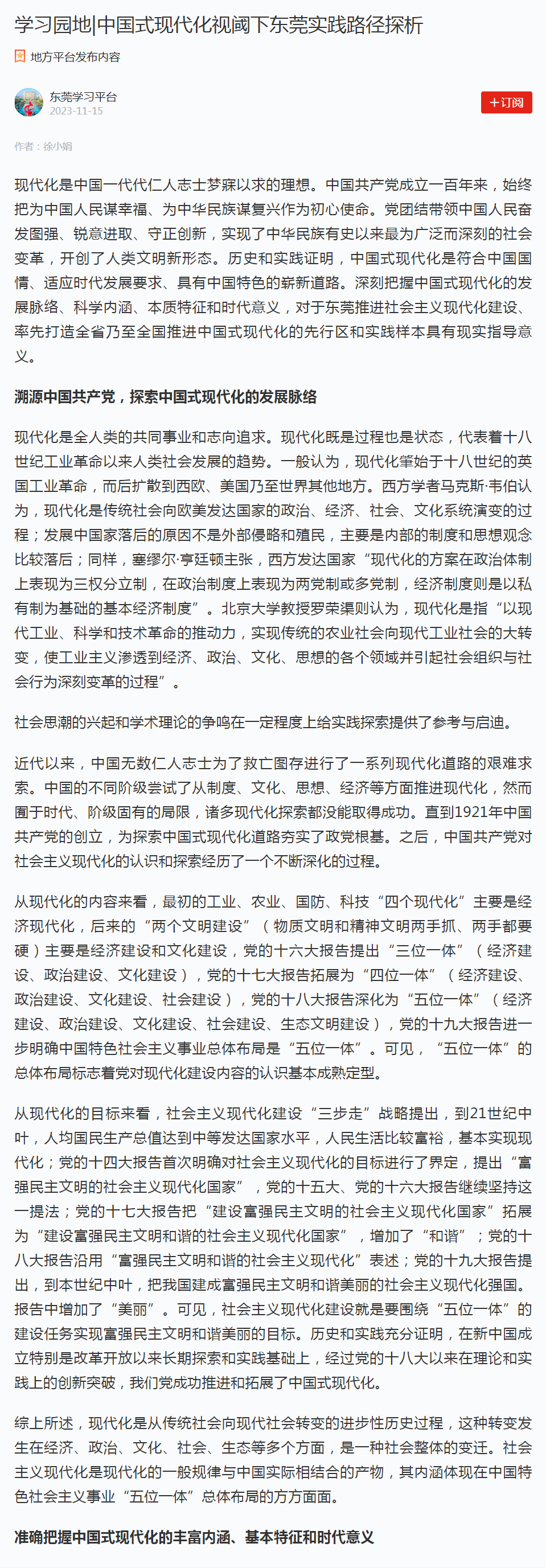 【学习强国】学习园地|中国式现代化视阈下东莞实践路径探析