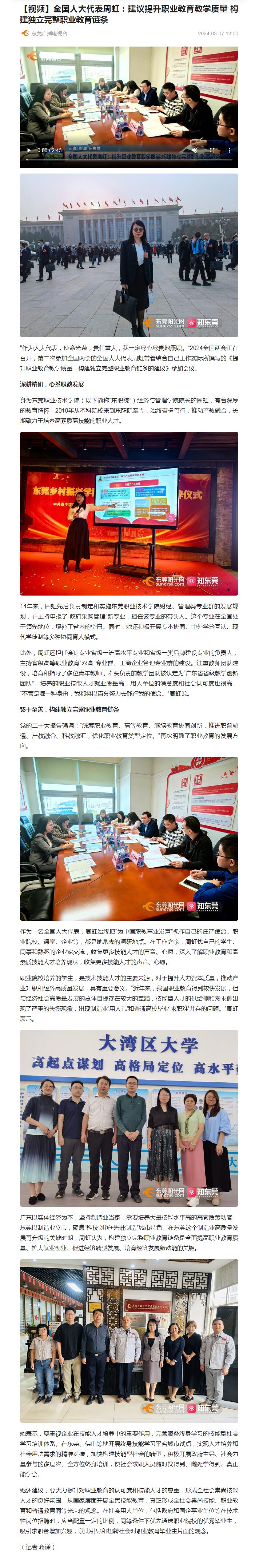 【知东莞】全国人大代表周虹:建议提升职业教育教学质量 构建独立完整职业教育链条