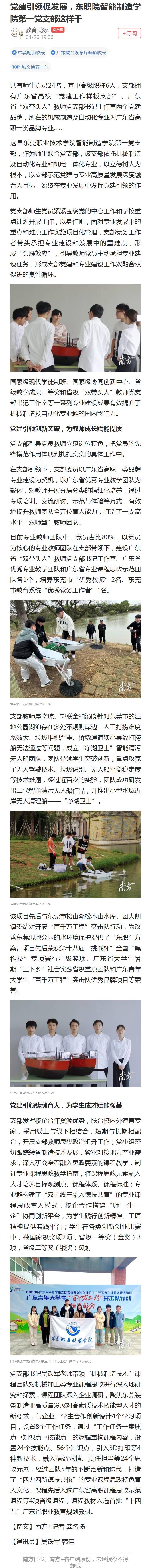 【南方+】党建引领促发展,东职院智能制造学院第一党支部这样干