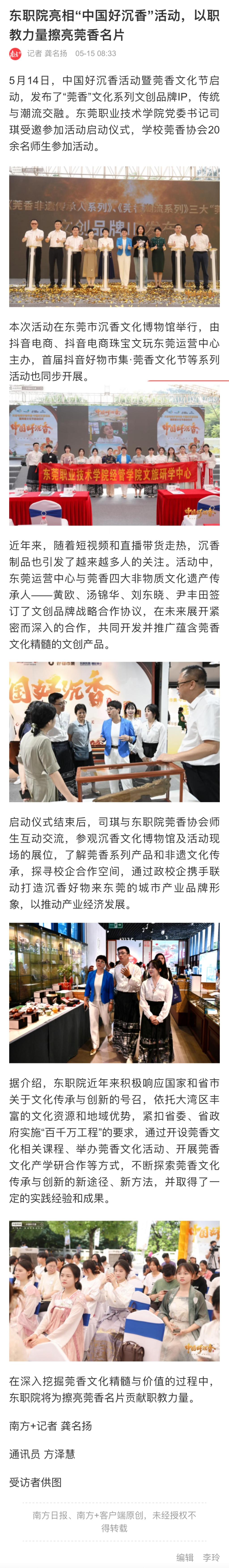 【南方+】东职院亮相“中国好沉香”活动,以职教力量擦亮莞香名片