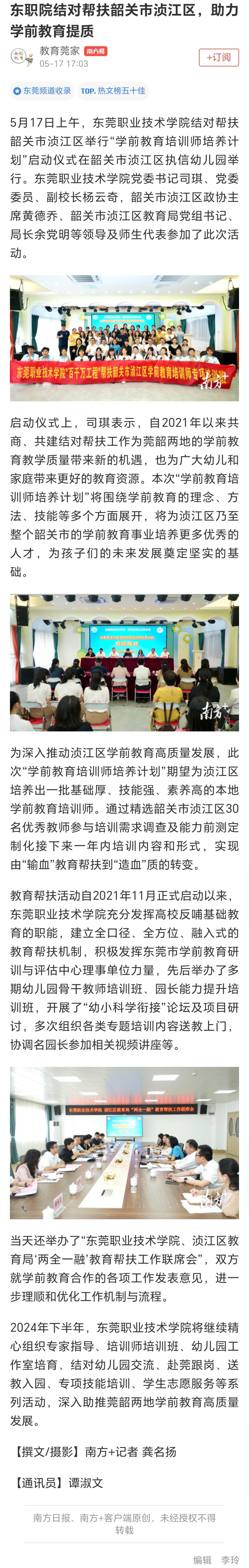 【南方+】东职院结对帮扶韶关市浈江区,助力学前教育提质