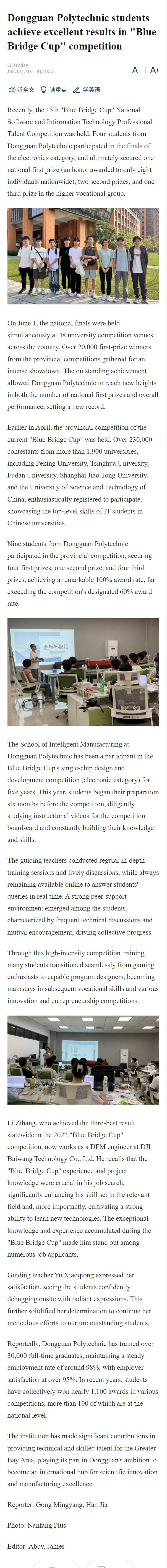 【GD TODAY】Dongguan Polytechnic students achieve excellent results in "Blue Bridge Cup"competition