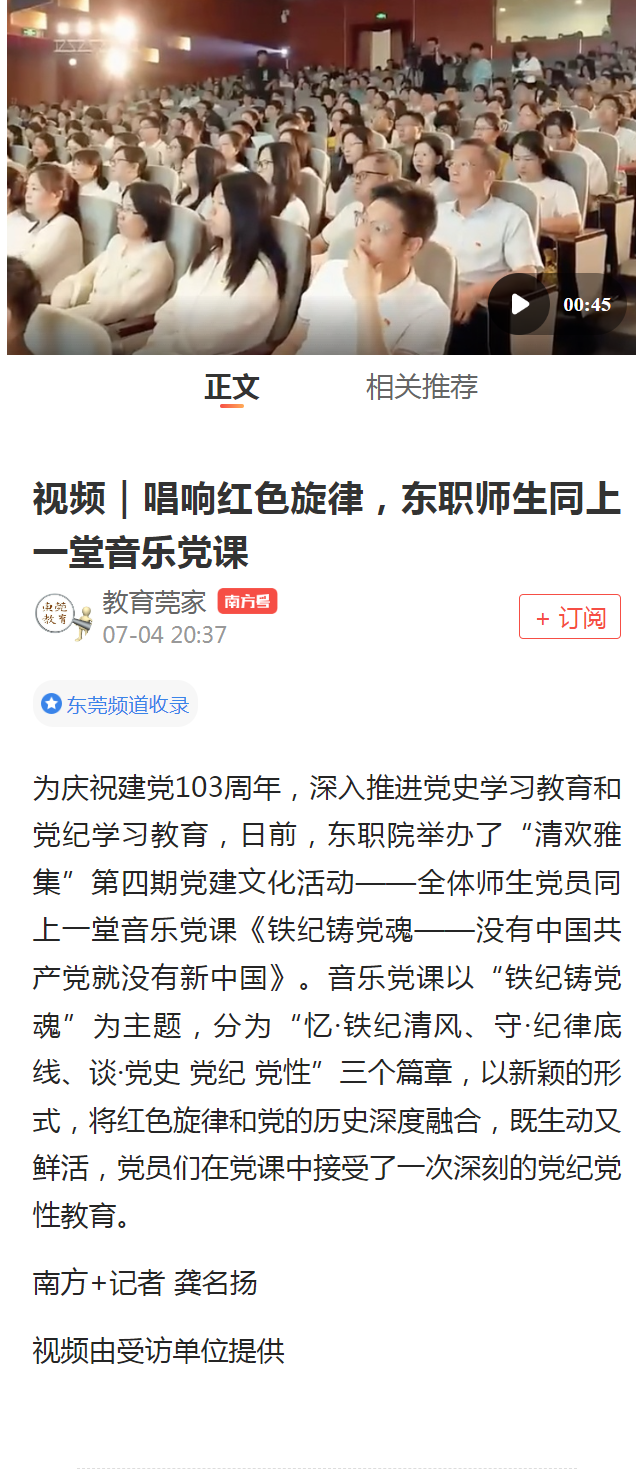【南方+】唱响红色旋律,东职师生同上一堂音乐党课