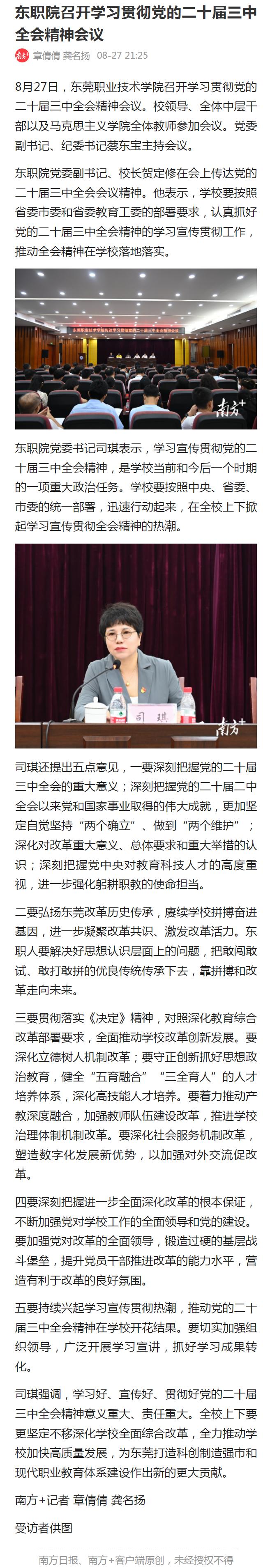 【南方+】东职院召开传达学习贯彻党的二十届三中全会精神会议