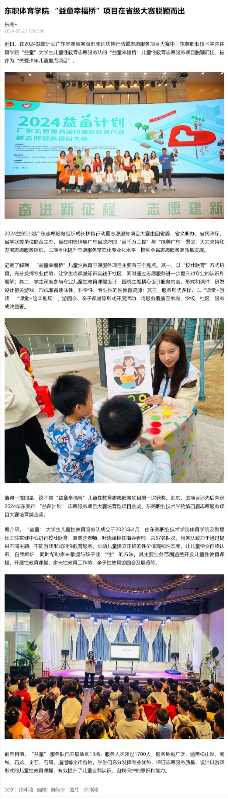 【东莞+】东职体育学院 “益童幸福桥”项目在省级大赛脱颖而出