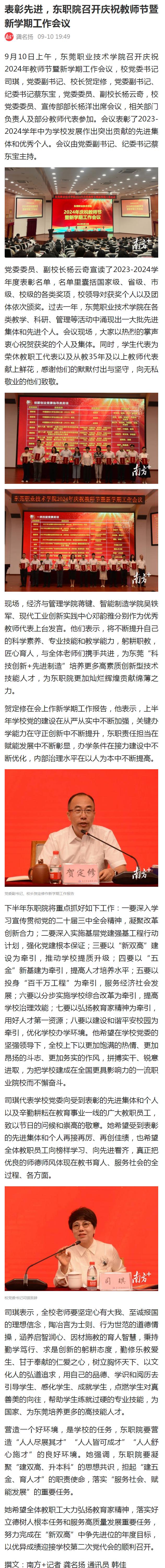 【南方+】表彰先进,东职院召开庆祝教师节暨新学期工作会议