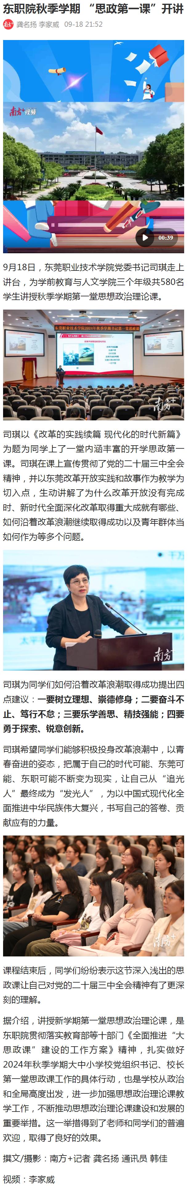 【南方+】东职院秋季学期 “思政第一课”开讲