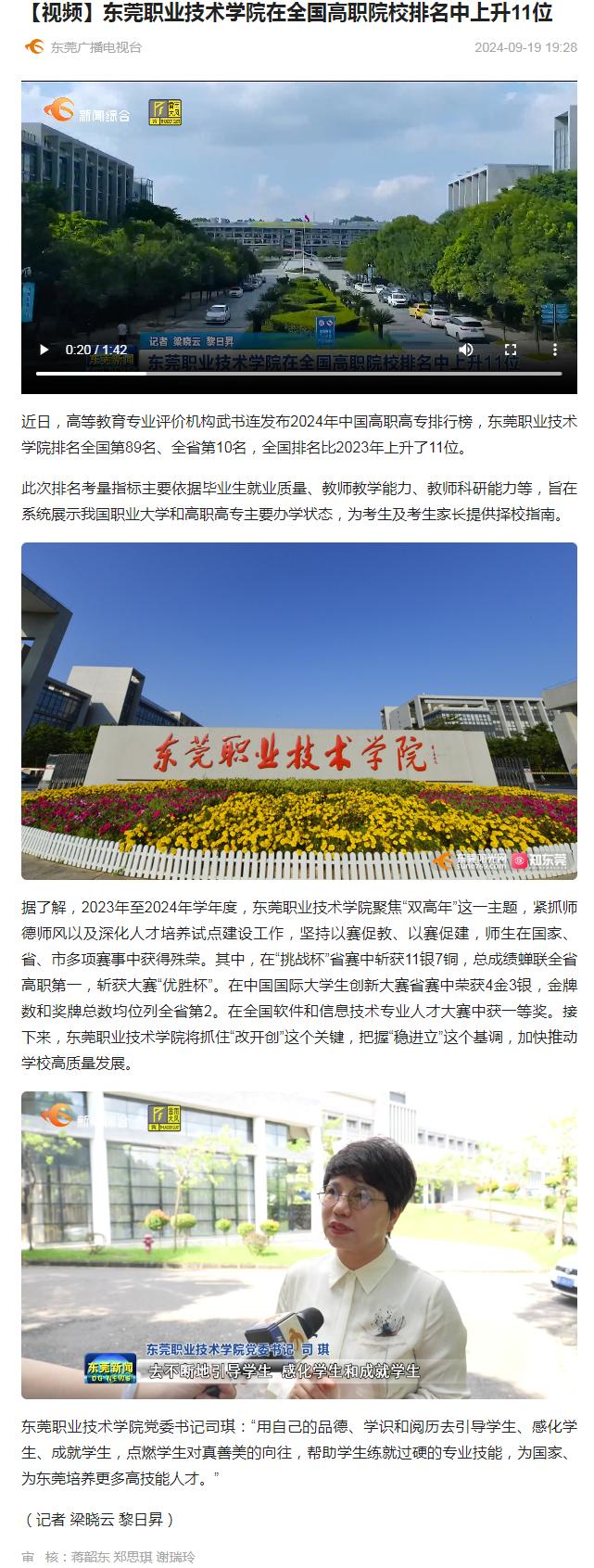 【东莞广播电视台】kaiyun中国官方网站在全国高职院校排名中上升11位