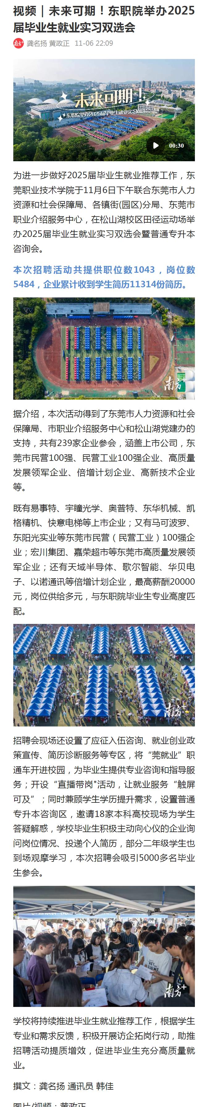 【南方+】视频|未来可期!东职院举办2025届毕业生就业实习双选会