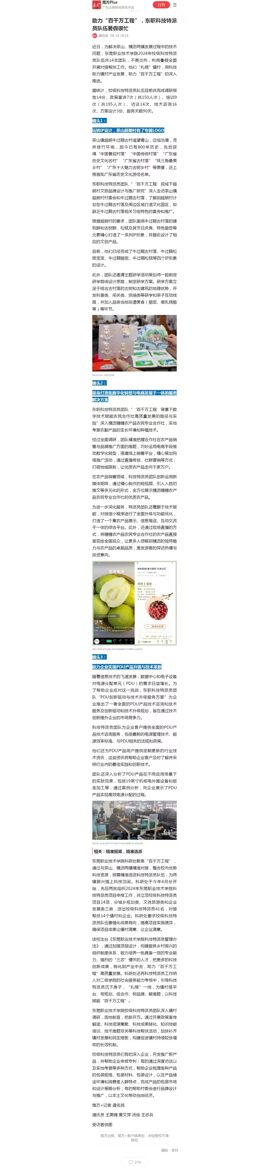 【南方+】助力“百千万工程”,东职科技特派员队伍暑假很忙